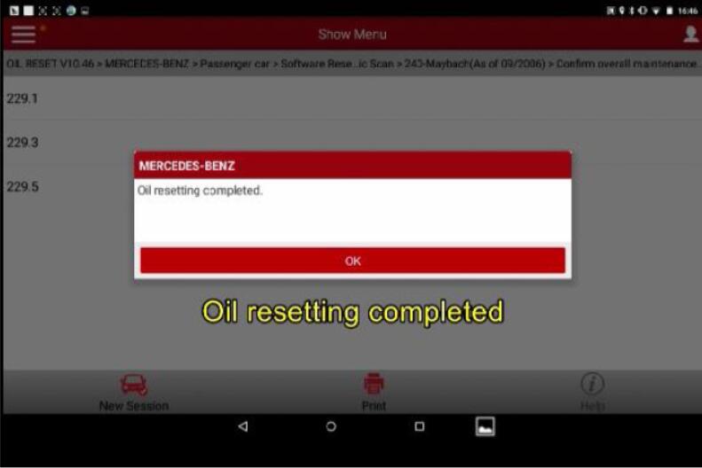 10.Select any type (level), it will display “Oil reset completed”. Click OK to complete.
